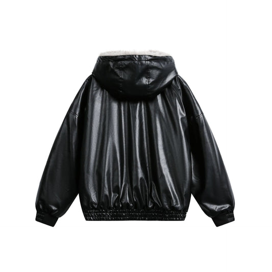 Reversible Hooded Winter Jacket Men's Oversized Parka with Faux Leather and Fur Combo